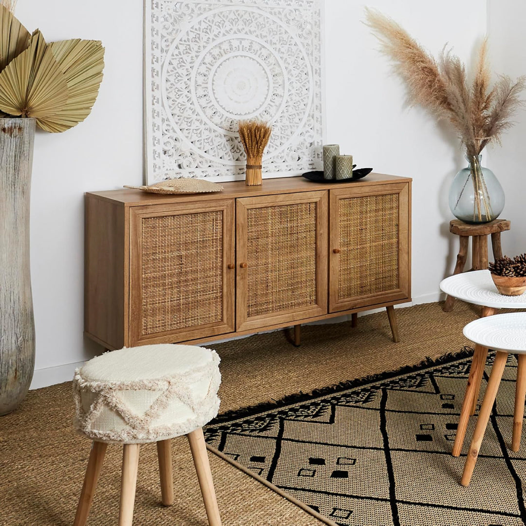 Organize your living room or bedroom in style with the BALI sideboard! Showcase your books and decorative items beautifully with this vintage and tropical-style wooden sideboard. The 3-door BALI sideboard will make a stunning addition to your interior!